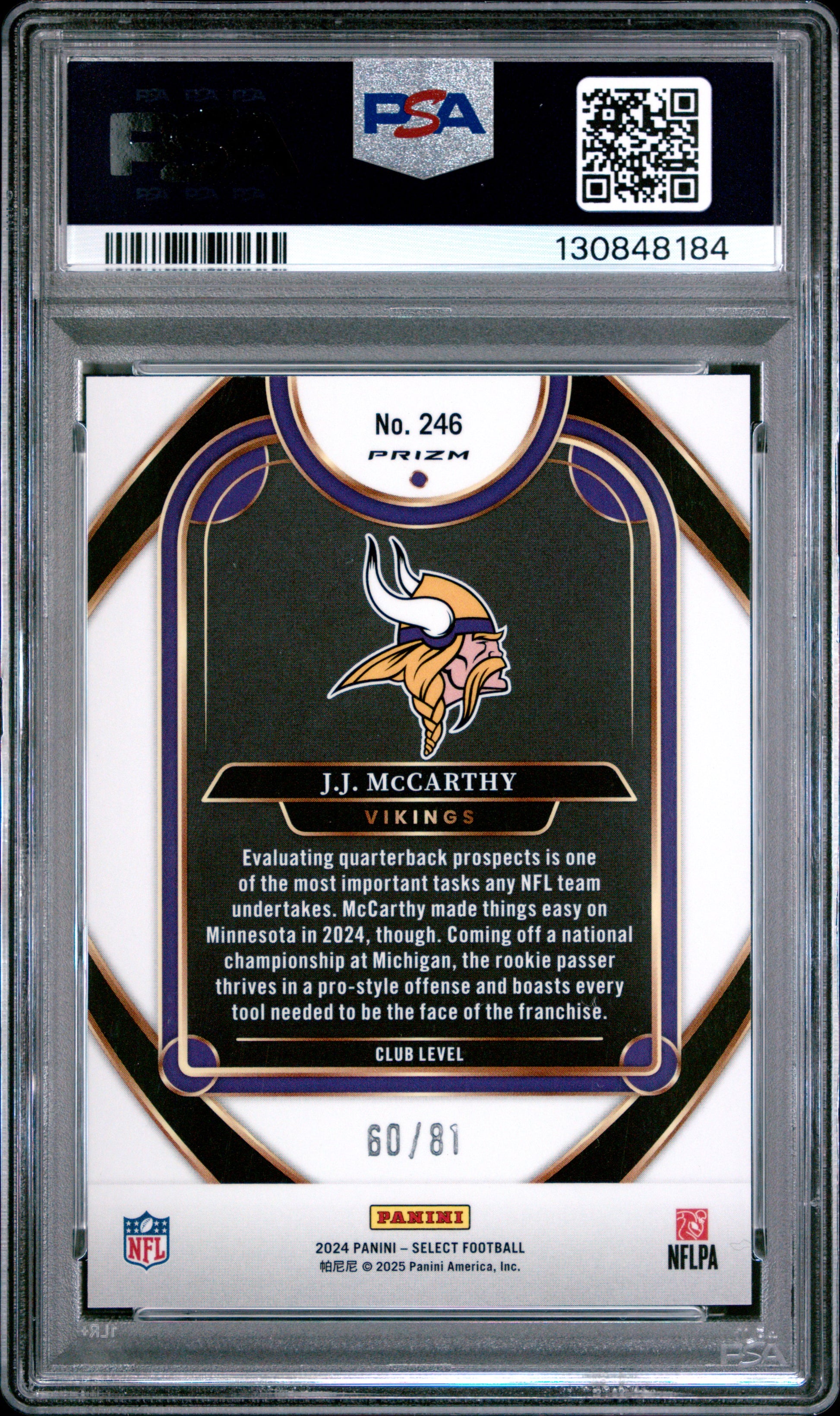 2024 Select JJ Mccarthy Dragon Scale /81 Rookie PSA 9